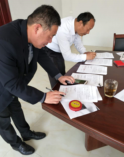 在縣百企辦逯亞森主任、大河屯鎮(zhèn)黨委張珀副書記、申沖村申慶振主任的見證下,各方與公司共同簽署了相關(guān)協(xié)議,正式將本批物資轉(zhuǎn)交給了申沖村委。