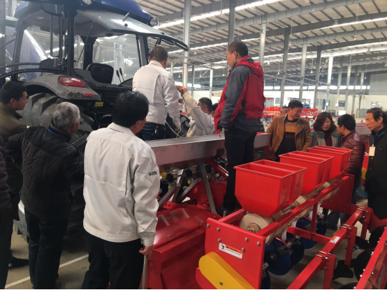 現(xiàn)場會上,亞澳專業(yè)技術(shù)人員及銷售經(jīng)理對我廠新研發(fā)的花生精量播種機(jī)做了詳細(xì)介紹,各鄉(xiāng)鎮(zhèn)社員及各站站長針對花生種植技術(shù)、施肥方法和機(jī)械化播種等方面做了詳細(xì)講解。隨后,60名用戶和農(nóng)技人員一同觀摩了機(jī)械化播種演示。