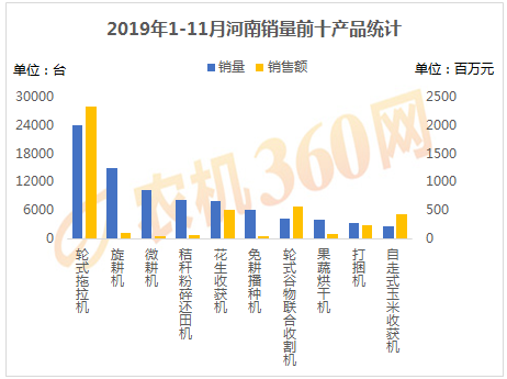 除了輪式拖拉機外,河南地區(qū)對旋耕機、微耕機和秸稈粉碎還田機的需求量也相對較高,但是這些農(nóng)機產(chǎn)品所貢獻的銷售額較低。