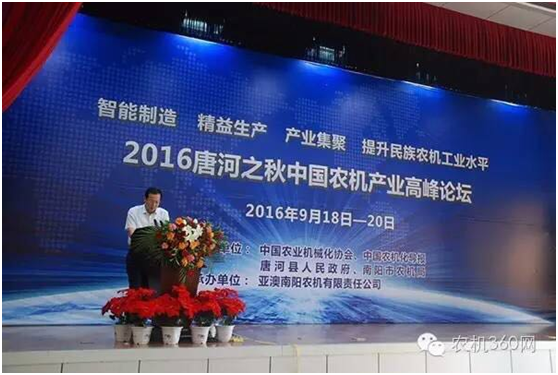 9月20日,由中國農(nóng)業(yè)機(jī)械化協(xié)會、《中國農(nóng)機(jī)化導(dǎo)報(bào)》、河南省唐河縣政府和南陽市農(nóng)機(jī)局共同主辦,亞澳南陽農(nóng)機(jī)有限責(zé)任公司承辦的2016唐河之秋中國農(nóng)機(jī)產(chǎn)業(yè)高峰論壇在河南省唐河縣舉行。全國各地農(nóng)機(jī)生產(chǎn)企業(yè)、當(dāng)?shù)亟?jīng)銷商以及媒體代表共200多人參加了此次論壇。
